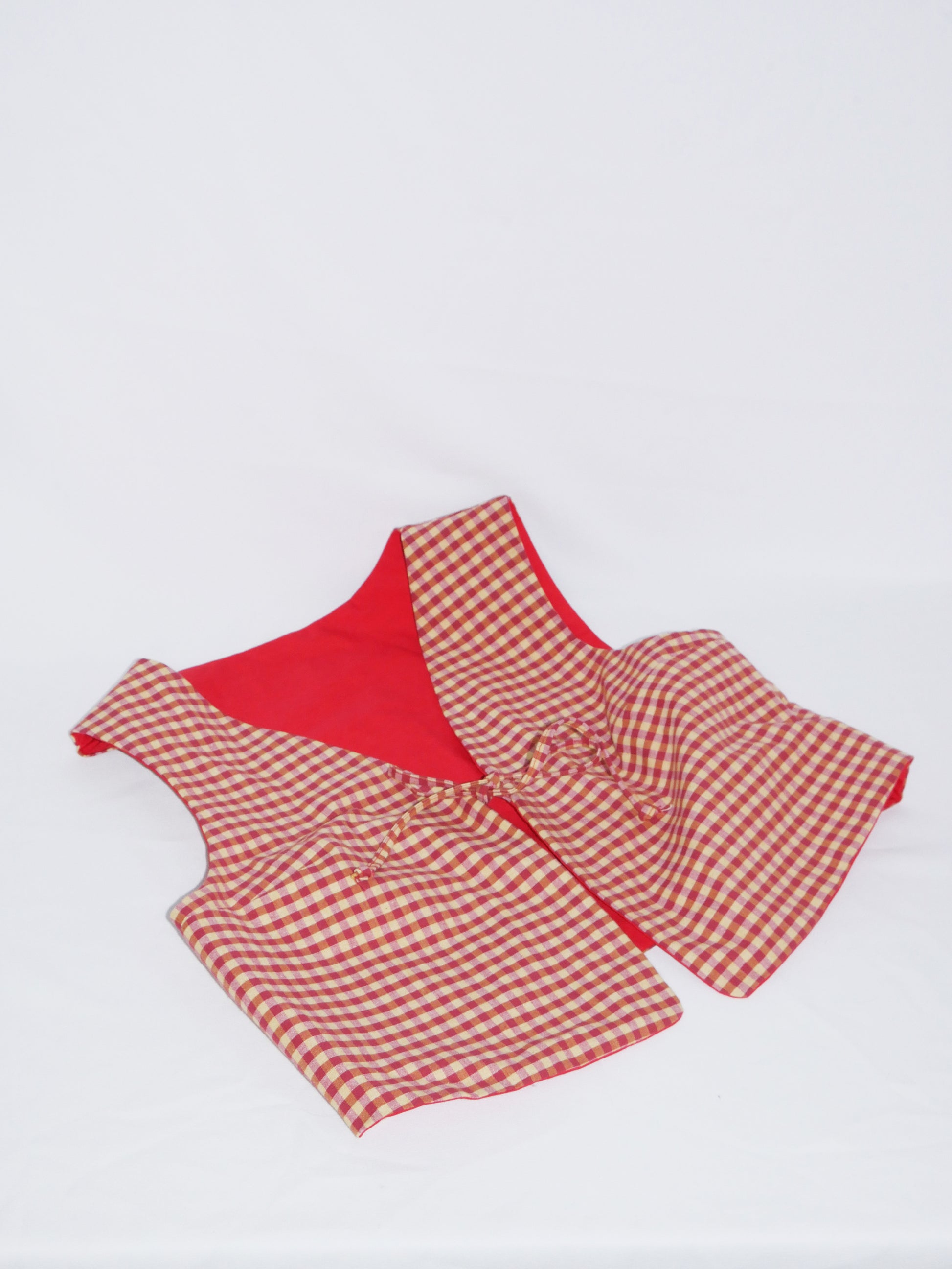 Este chaleco es reversible, así que tendrás un chaleco de cuadros vichy rojo por un lado y uno rojo por el otro, un 2x1, ¿que más se puede pedir?