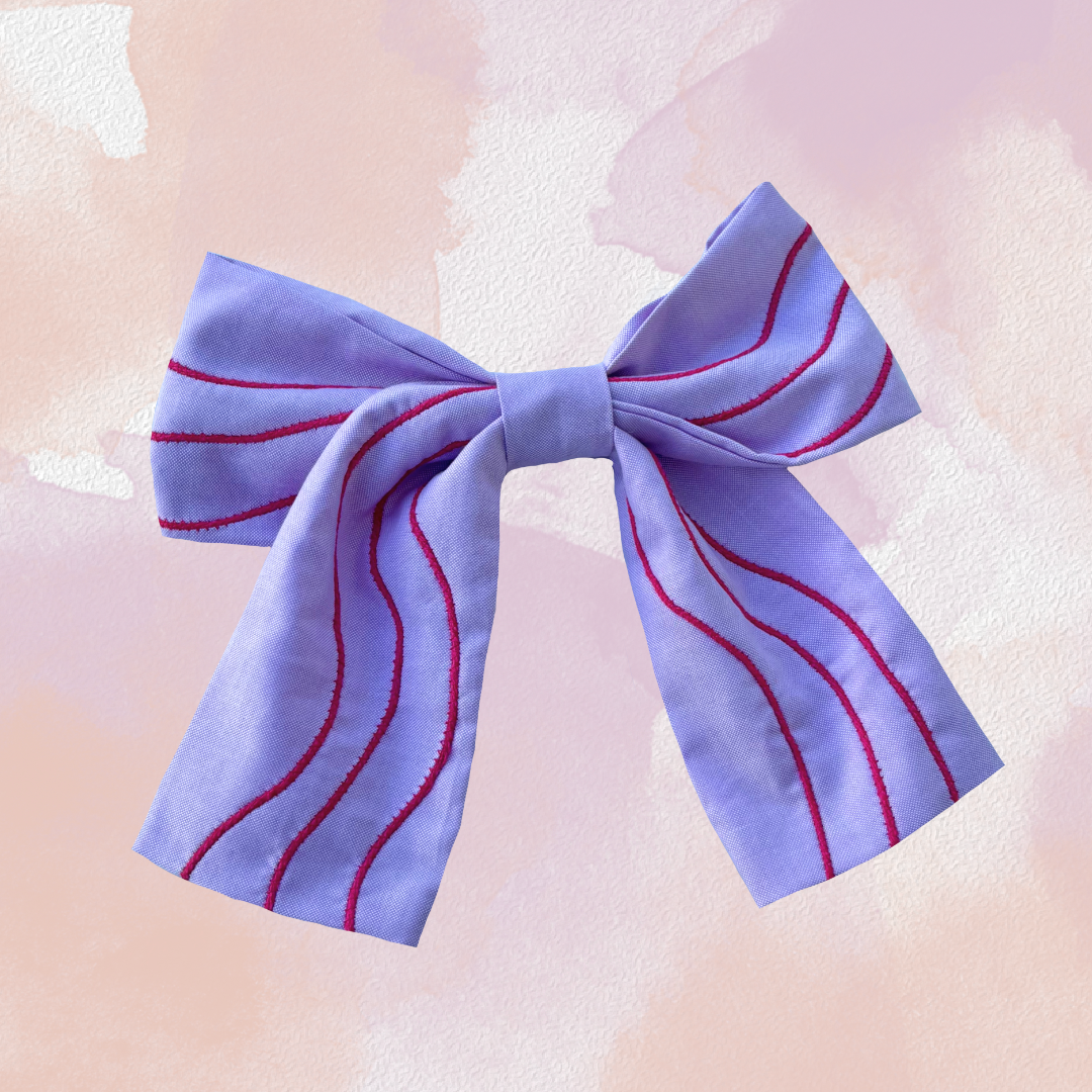 El encanto de la moda coquette, donde los tonos pasteles, accesorios llamativos y estampados sutiles definen el estilo. Este lazo no solo sigue la corriente de esta tendencia, sino que la redefine. Su color malva y el cordón de algodón ondulado, creando un efecto de bordado, añaden un toque único y lleno de color a tu peinado.