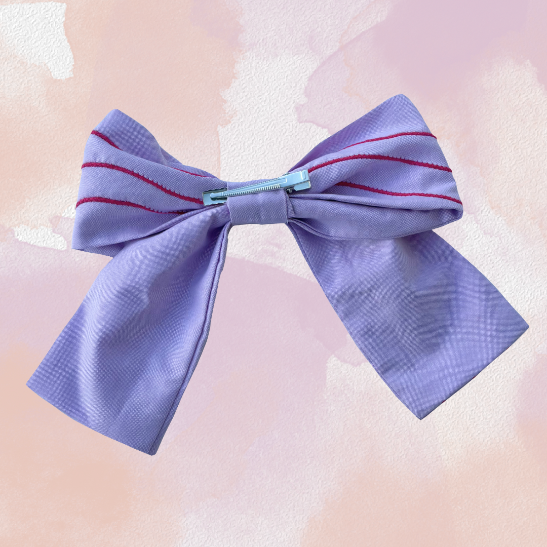 Descubre los detalles de este lazo de pelo en color malva. Si compartes la adicción a los lazos como yo, este accesorio se convertirá en un imprescindible para elevar tu look. Los lazos XL son el "must-have" del momento, alineándose perfectamente con la tendencia que arrasa en las redes: la moda coquette.