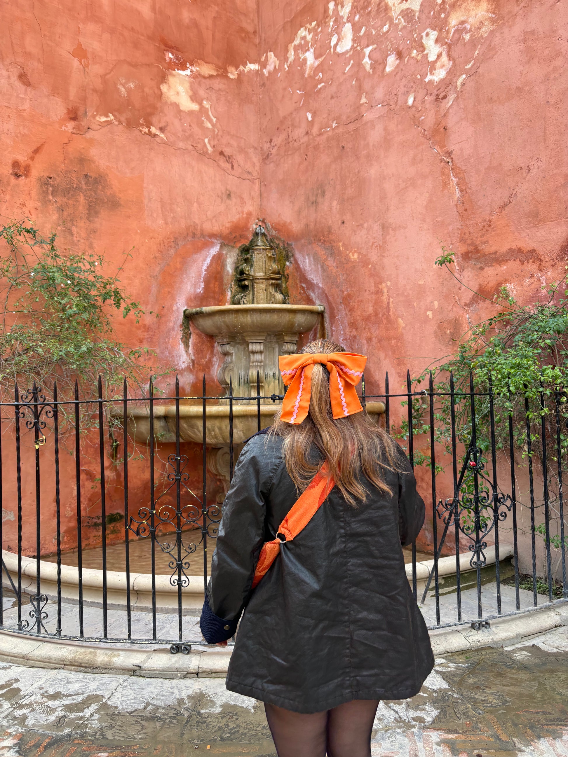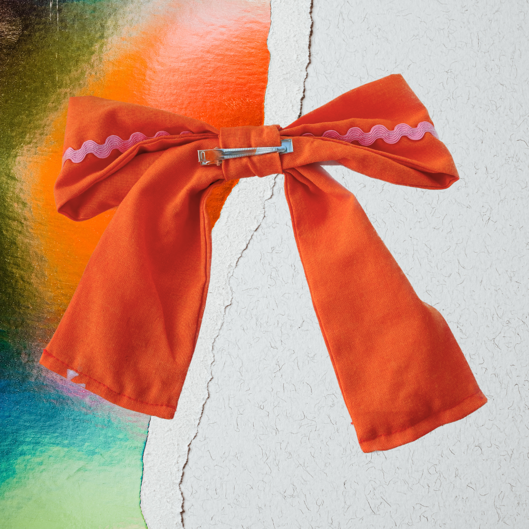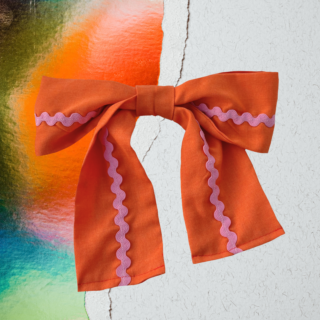 Echa un vistazo a nuestro lazo de pelo naranja, ¡es puro amor! Lleva una cinta de piquillo en rosa palo que crea un contraste increíble. Y sabes, aunque ahora los lazos XL son lo más, este accesorio va más allá de las modas. Los lazos siempre han sido parte de nuestra vida, así que estoy segura de que seguirán siendo un básico en tus looks, sea cual sea la próxima moda.