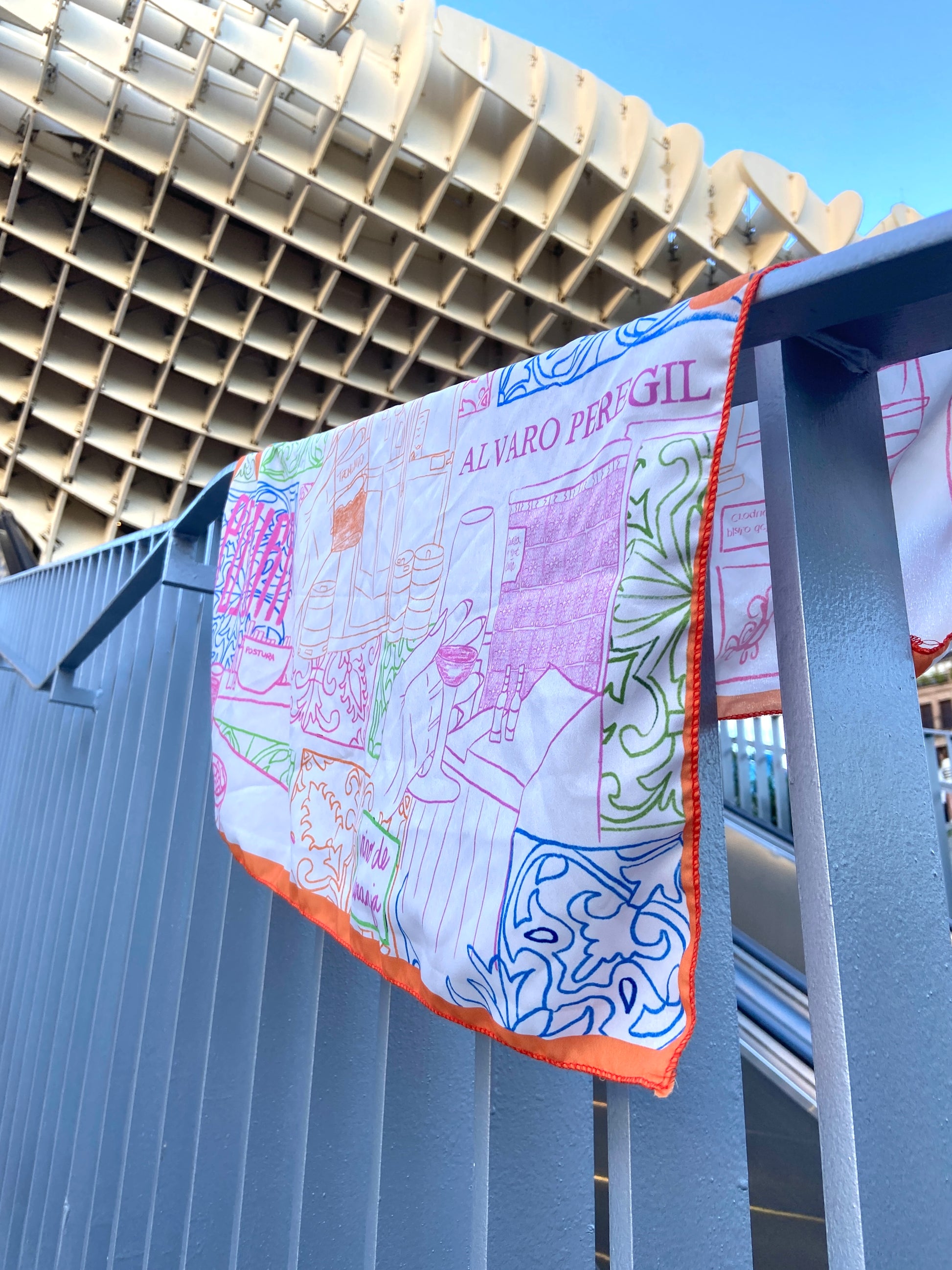 El pañuelo Sevilla es un diseño lleno de color y sevillanismo.