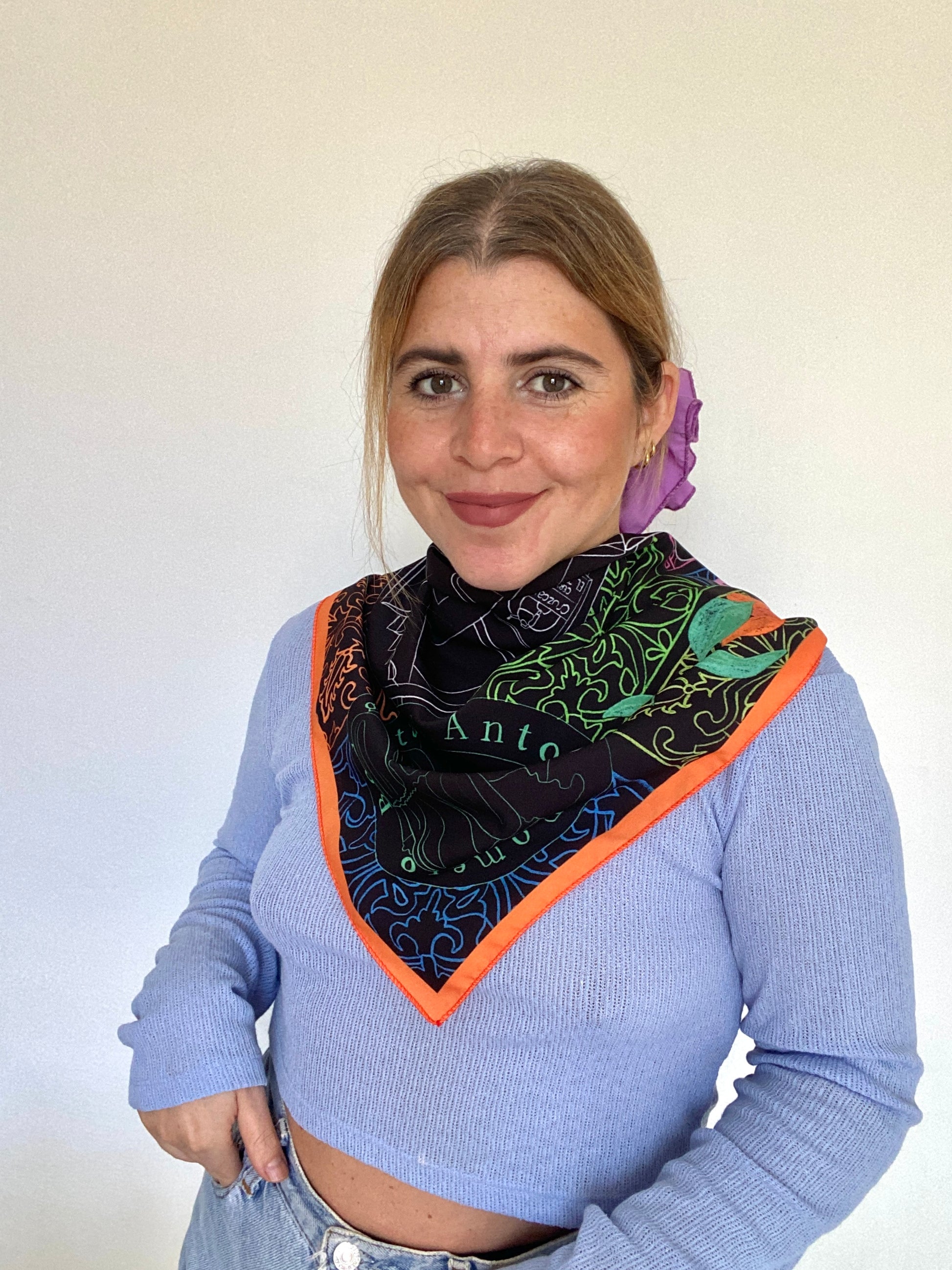 El pañuelo Sevilla es un diseño lleno de color y sevillanismo.